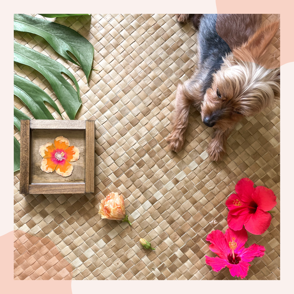 私は一生を通じて絵を描いてきましたが、数年前に愛犬のロメオを失ったとき、絵を描くことが私の悲しみを乗り越える助けになりました。ロメオを偲んで特別なことをしたいと思い、平和と幸せをもたらす作品を作り始めました。ハワイに移住することは、絵や絵の具を持ってこれなかったため、ゼロからのスタートを意味しました。これがきっかけで、私は別のメディウムに挑戦することになりました。レジンを使った実験を始め、その楽しさに完全に魅了されました!レジンは独自の流れを持っており、完全にコントロールすることができないため、物事を手放し、流れに身を任せる方法を学びました。