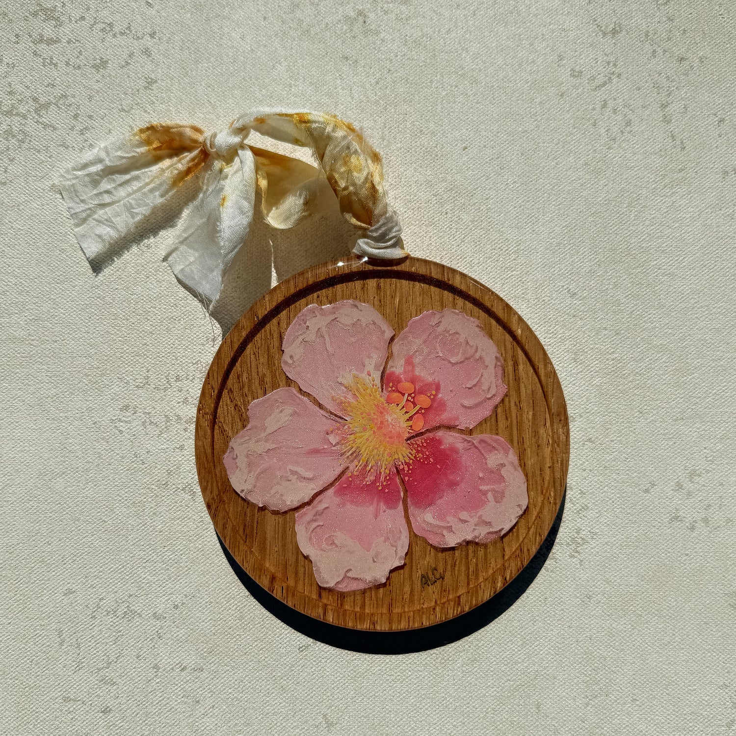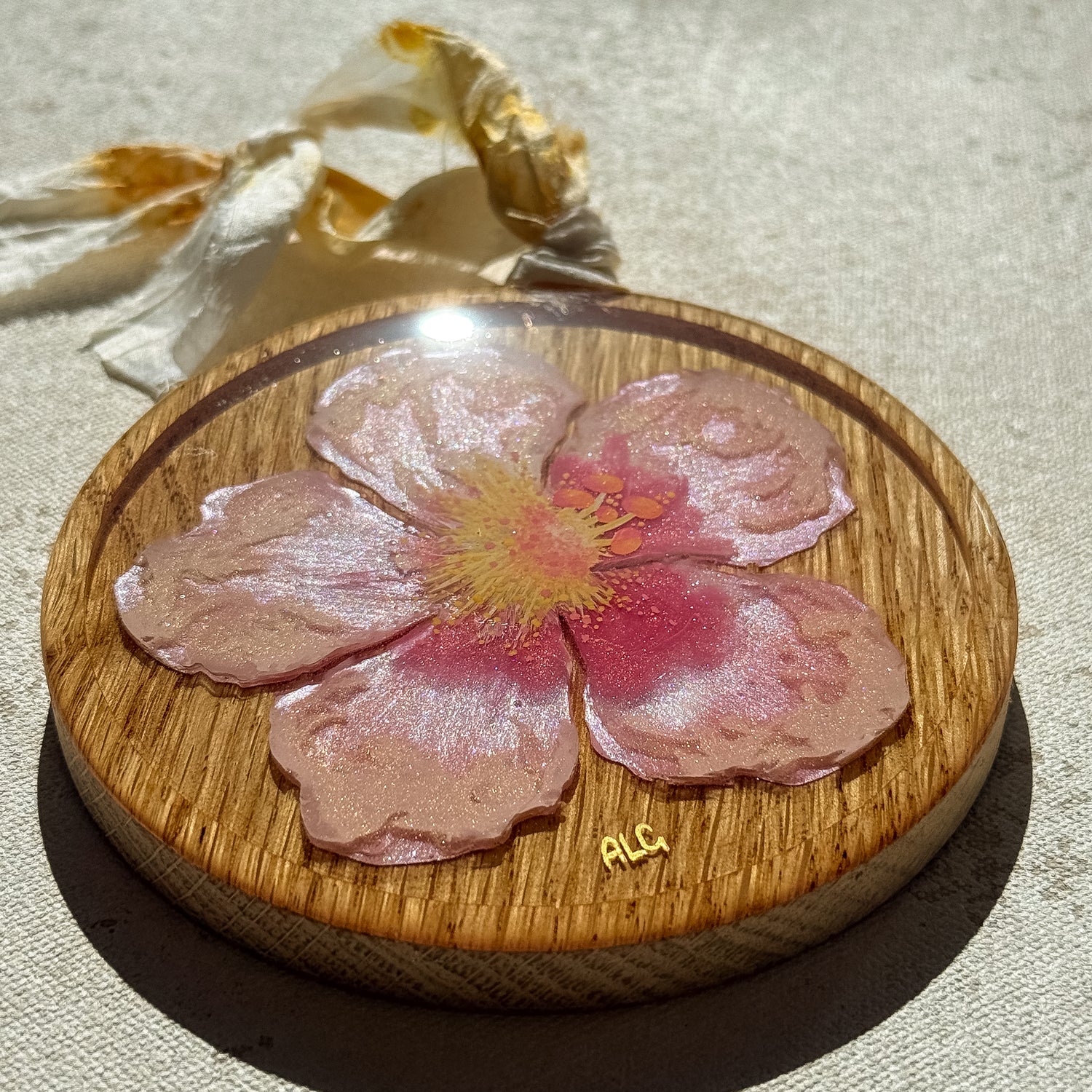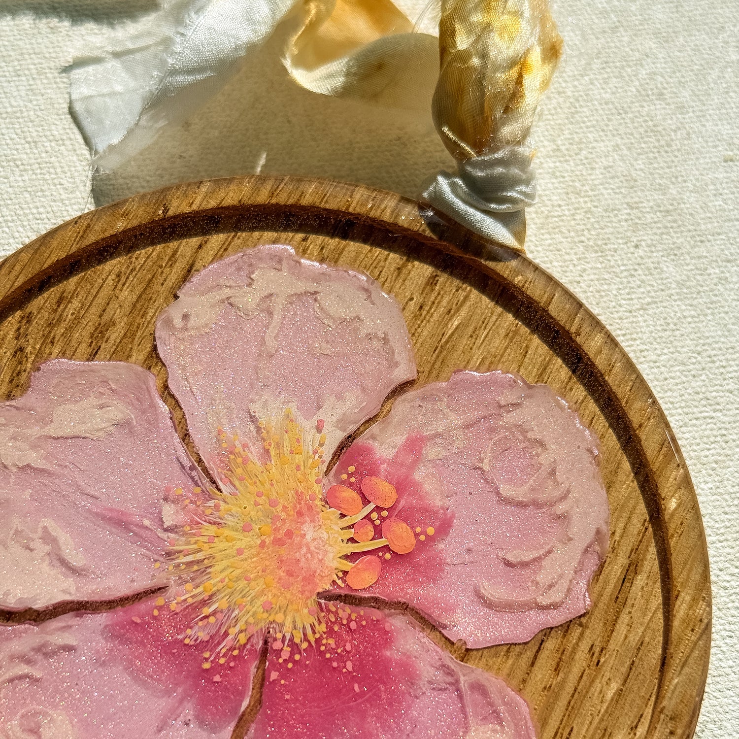 Resin and acrylic on wood round piece