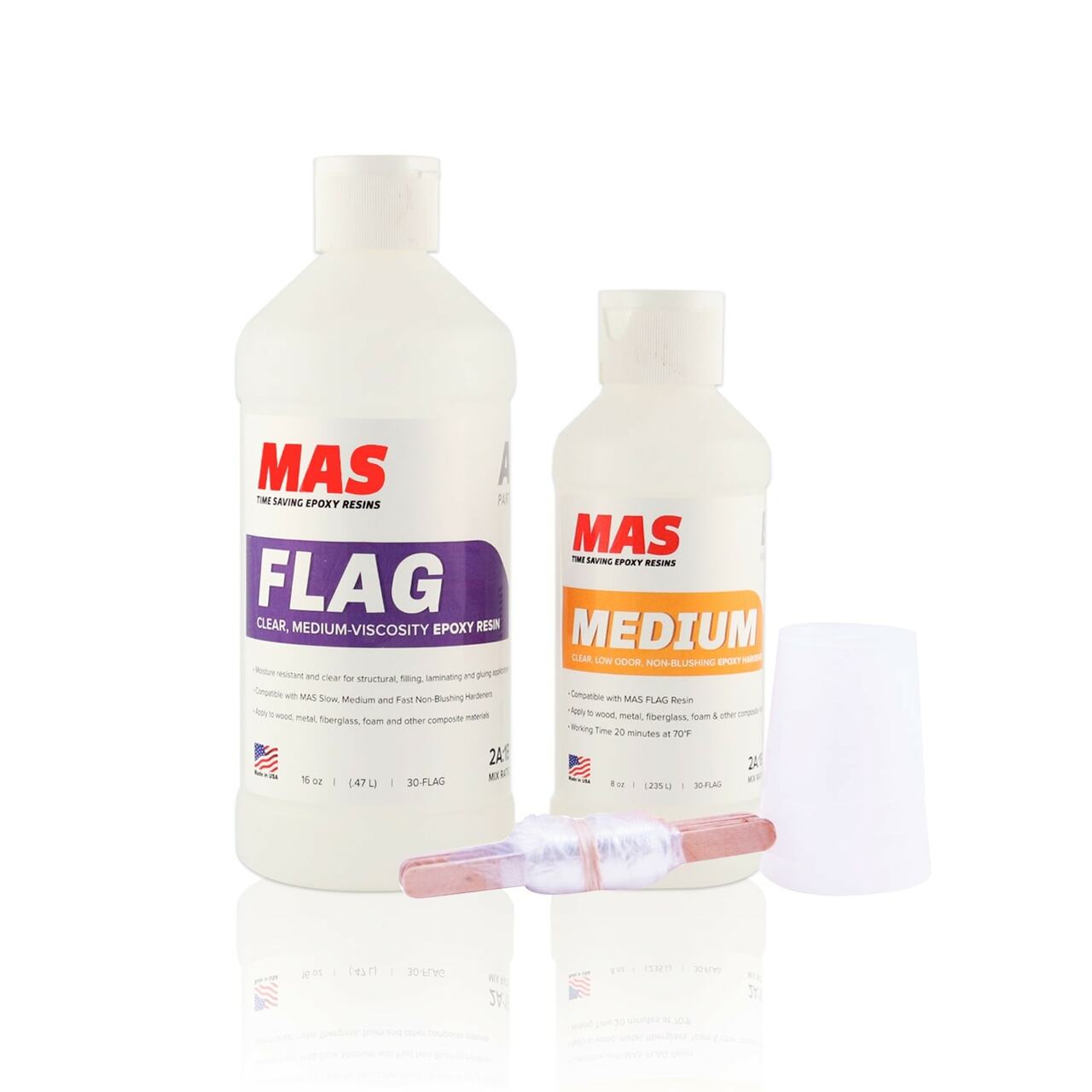 The Handy Repair Kit gives you a convenient amount of the MAS Epoxies 2:1 Non-Blushing System for small repairs and emergency needs. The kit includes FLAG resin, medium hardener, mixing cups, mixing sticks and gloves, so you have everything you need right at your fingertips.