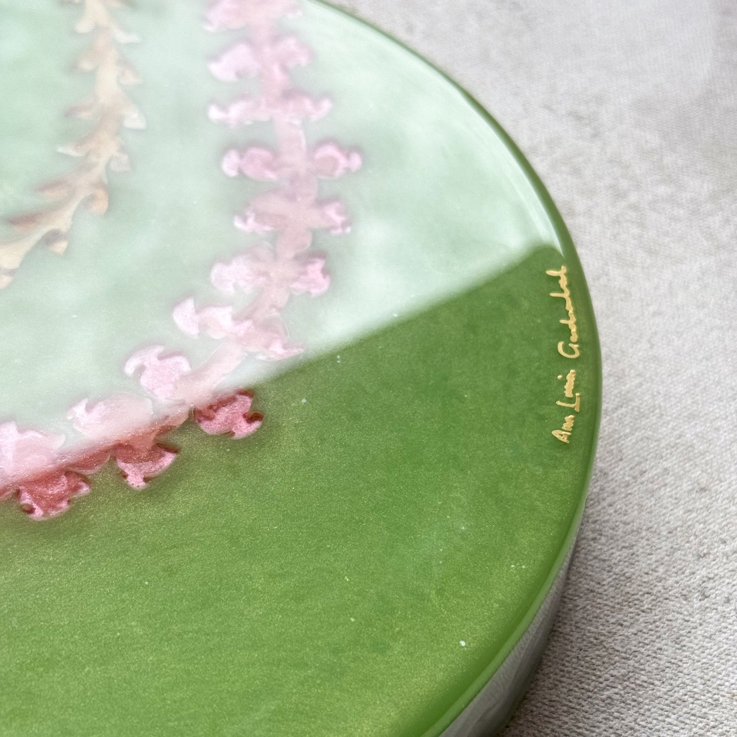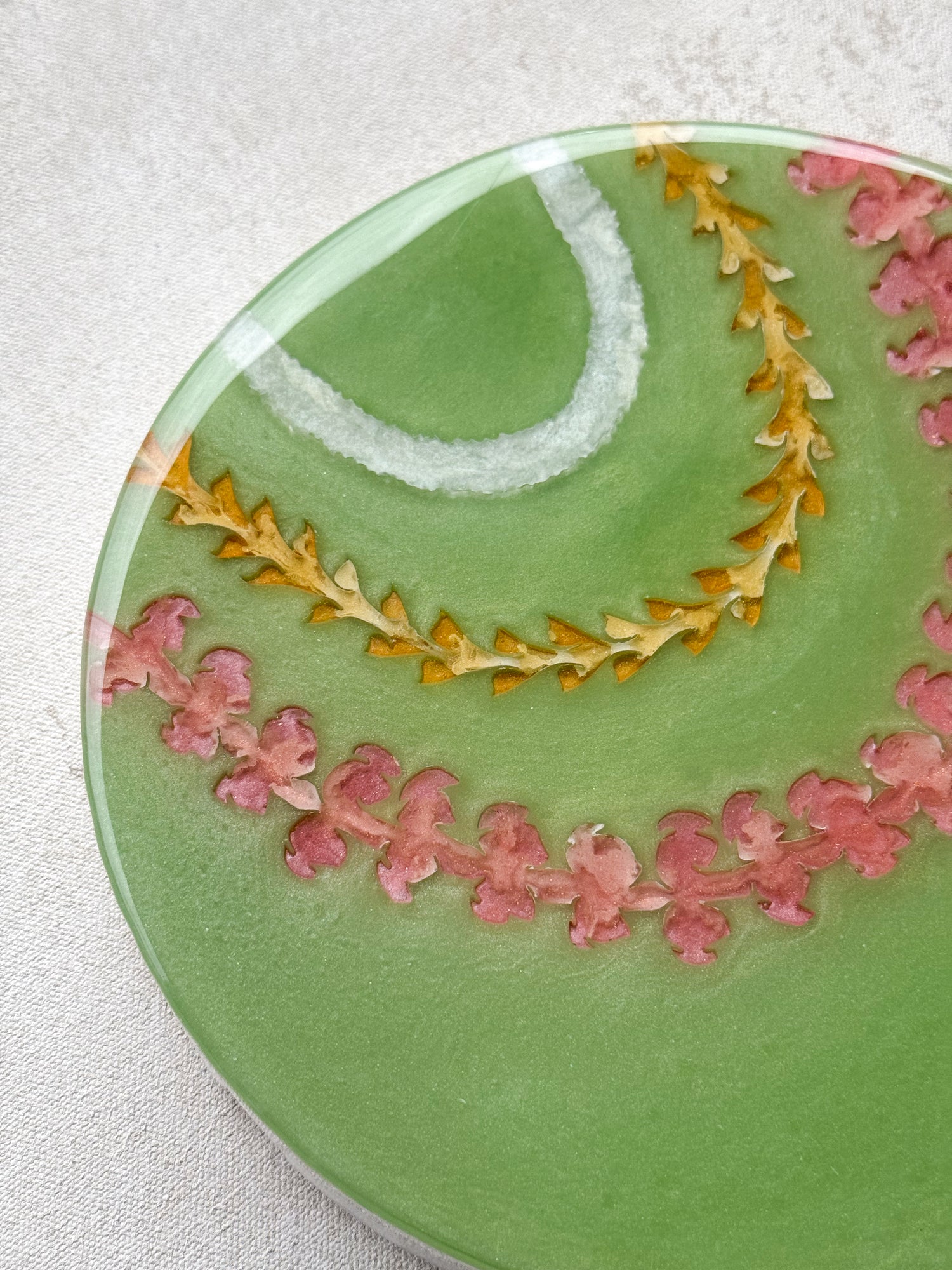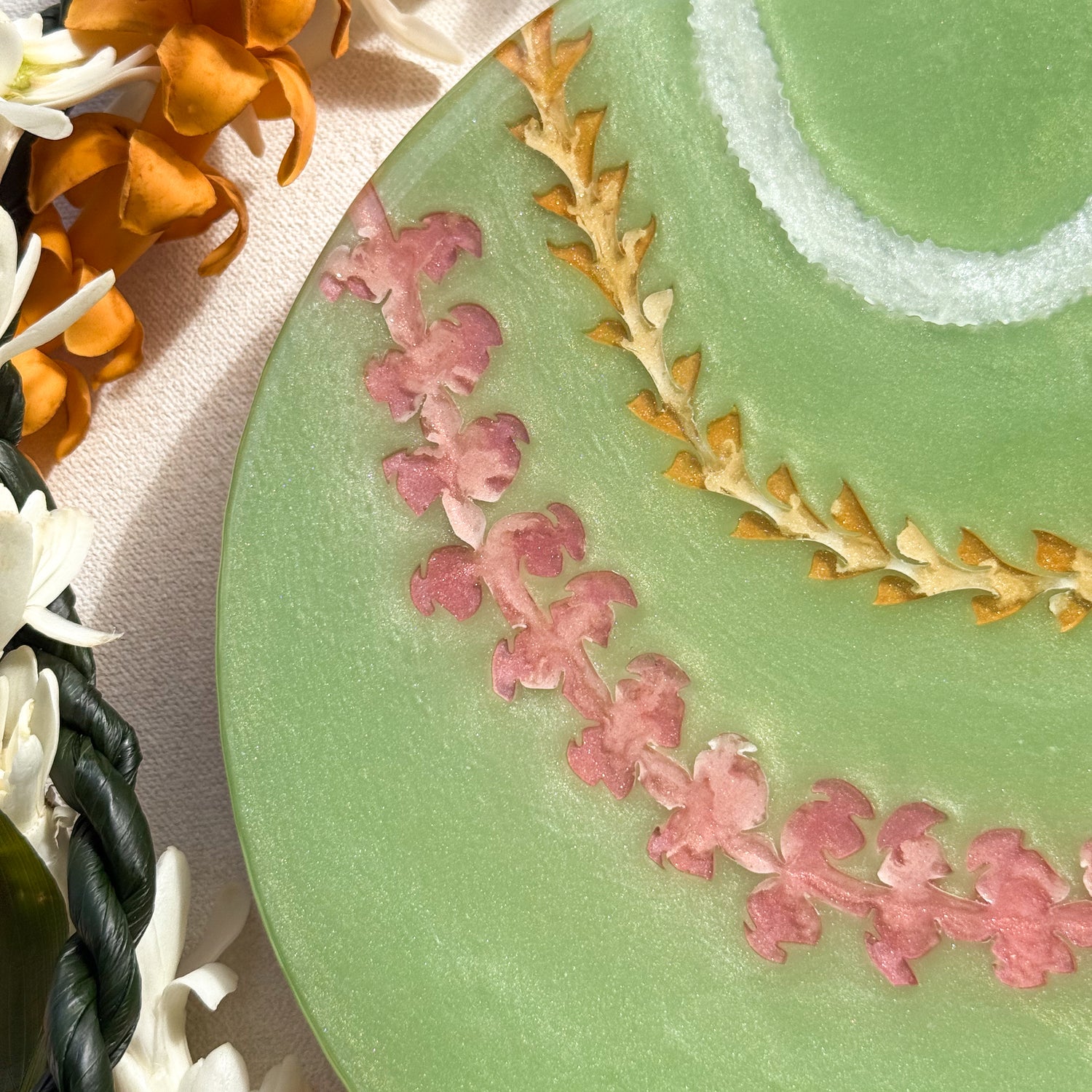 The pieces in this collection took an average of 5 weeks to make. To help preserve this piece, please keep away from direct sunlight. If needed, you can clean the surface of the piece with glass cleaner and a gentle cloth. Please note that the artist tries her best to make each piece as flawless as possible but resin is a medium that makes this very difficult. This piece might have dust particles but it does not take away from the beauty of the piece. Embracing imperfections, this piece was made with love and aloha.
