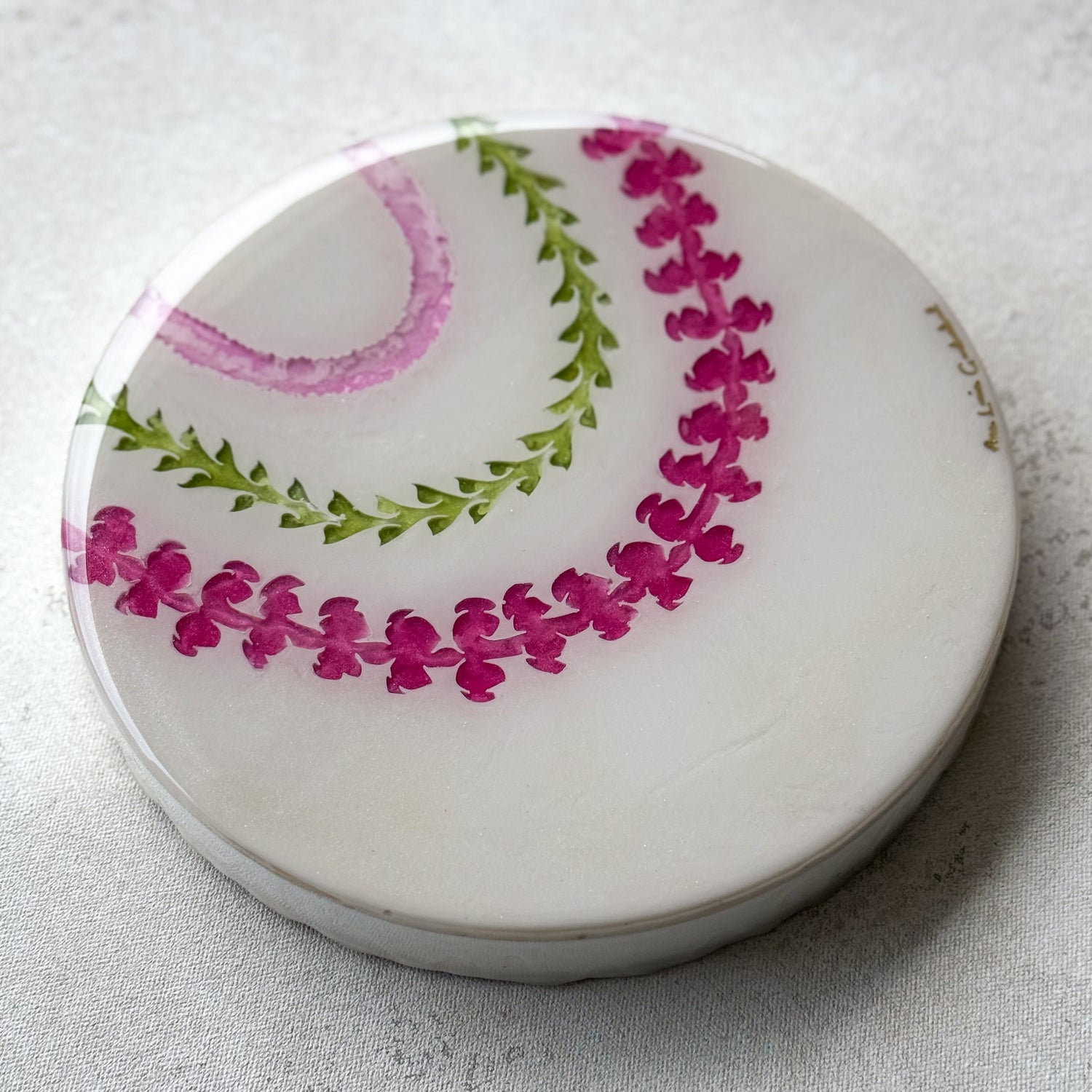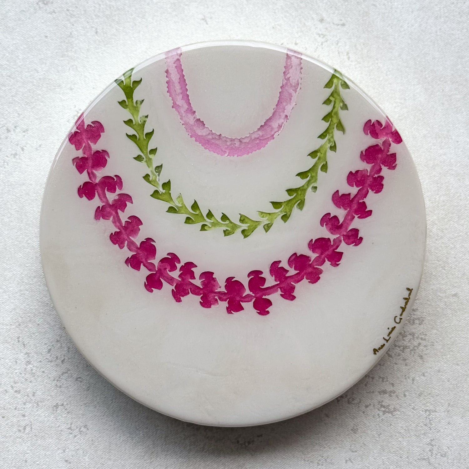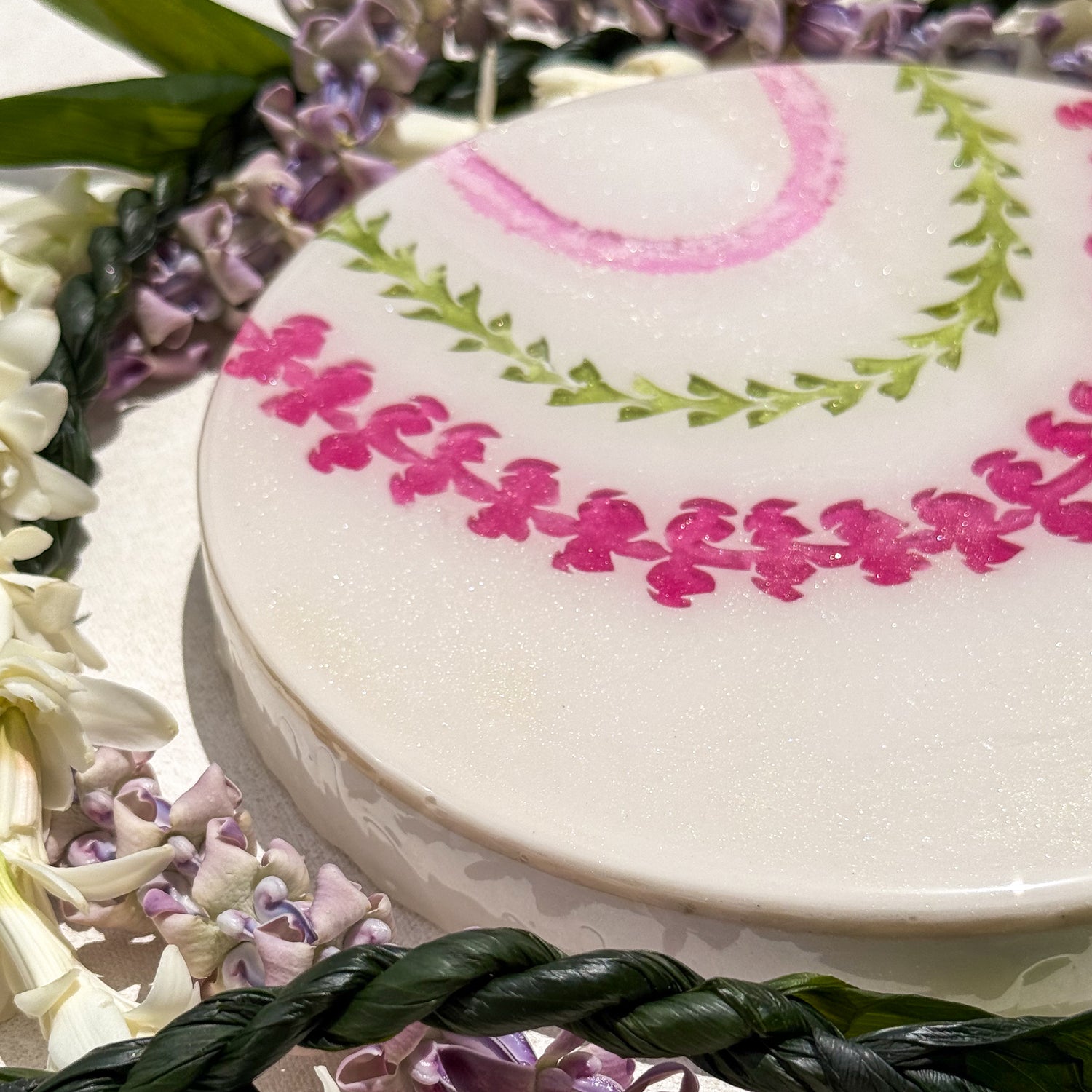 The “Lei Mau Loa” Collection celebrates the timeless tradition of the Hawaiian lei, symbolizing love, honor, and connection. This piece embodies the spirit of “Lei Mau Loa,” which means “eternal lei” in Hawaiian. Inspired by the enduring beauty of the islands, “Forever Lei” represents the everlasting bonds we share with loved ones and the vibrant aloha that flows year-round in Hawai‘i. Just as leis are woven with care and meaning, this piece captures the joyful colors and textures of flowers that bloom across the islands, honoring a tradition that never fades.