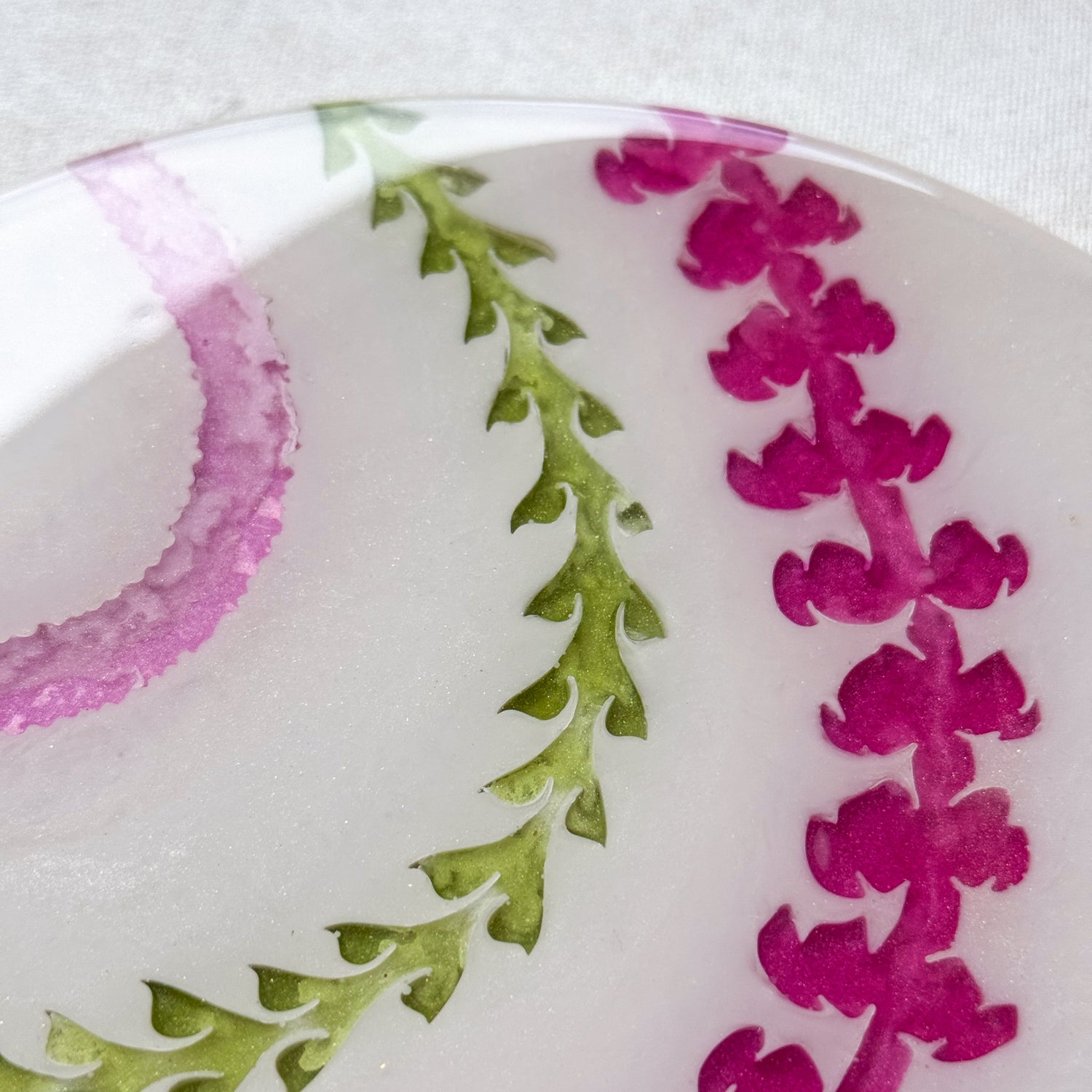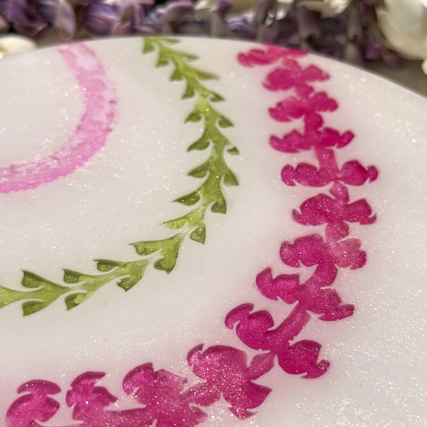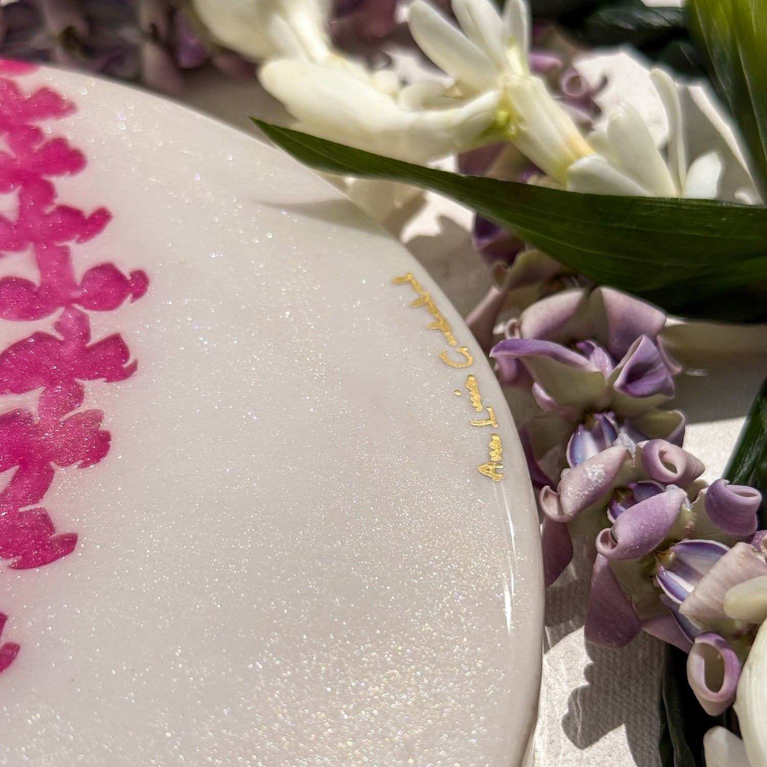 The pieces in this collection took about 9 weeks to make. To help preserve this piece, please keep away from direct sunlight. If needed, you can clean the surface of the piece with glass cleaner and a gentle cloth. Please note that the artist tries her best to make each piece as flawless as possible but resin is a medium that makes this very difficult. This piece might have dust particles but it does not take away from the beauty of the piece. Embracing imperfections, this piece was made with love and aloha.